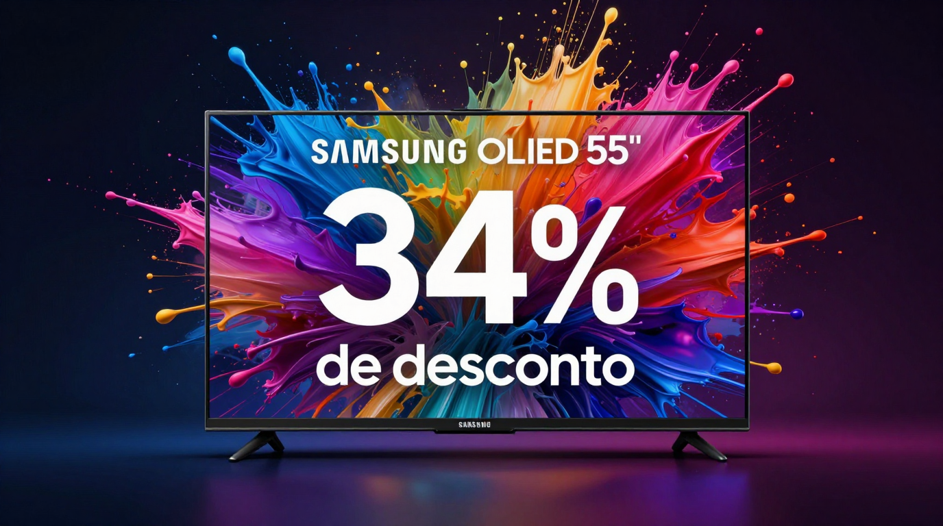 Samsung OLED S85F de 55 polegadas cai para R$ 3.999 no Mercado Livre — menor preço de OLED Samsung no Brasil. Taxa de 120 Hz e cloud gaming.